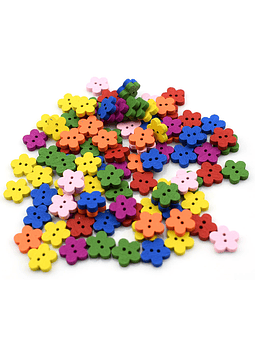 Botón de madera en forma de flor Tamaño 1,5 cm Se vende por unidad, se entrega en caja de cartulina para que puedas tenerlos ordenados en cualquier momento.